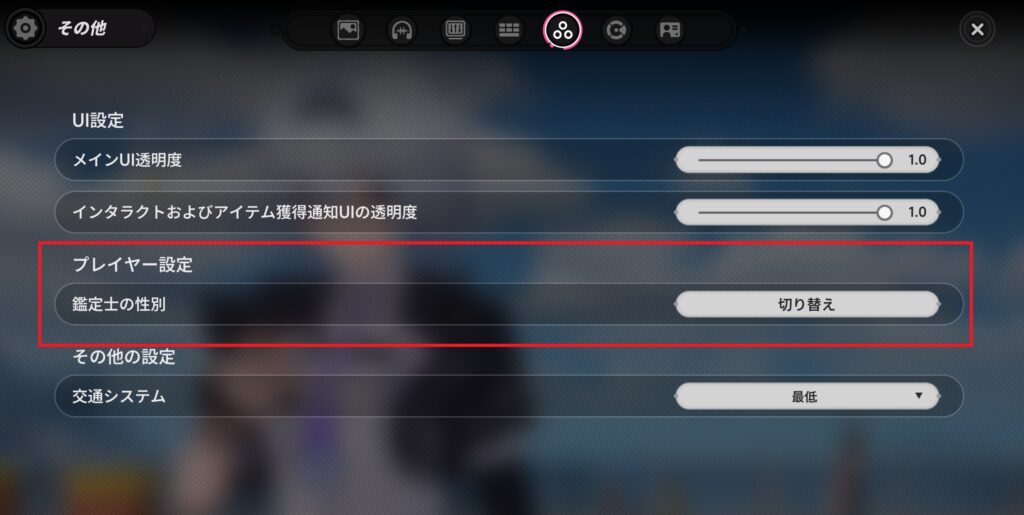 プレイヤー設定「鑑定士の性別」という項目があります。